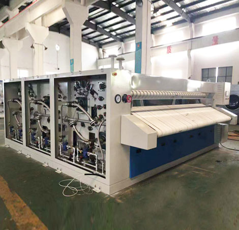 1、所有烘筒表面均經(jīng)過研磨處理,光潔度高,有效提高了布草熨燙質(zhì)量;